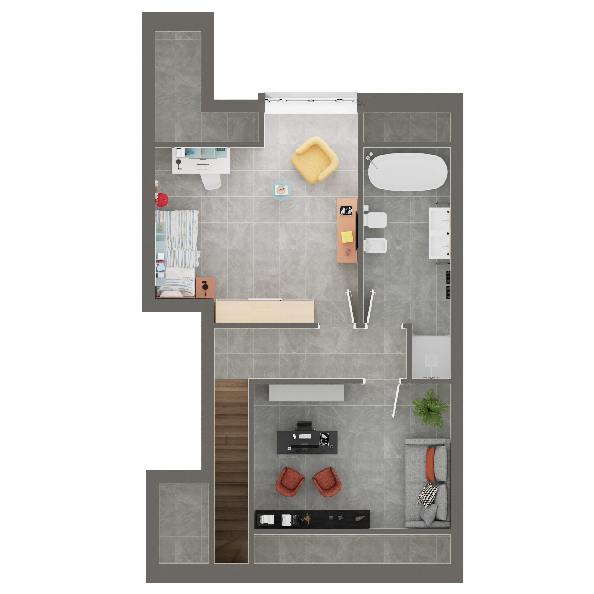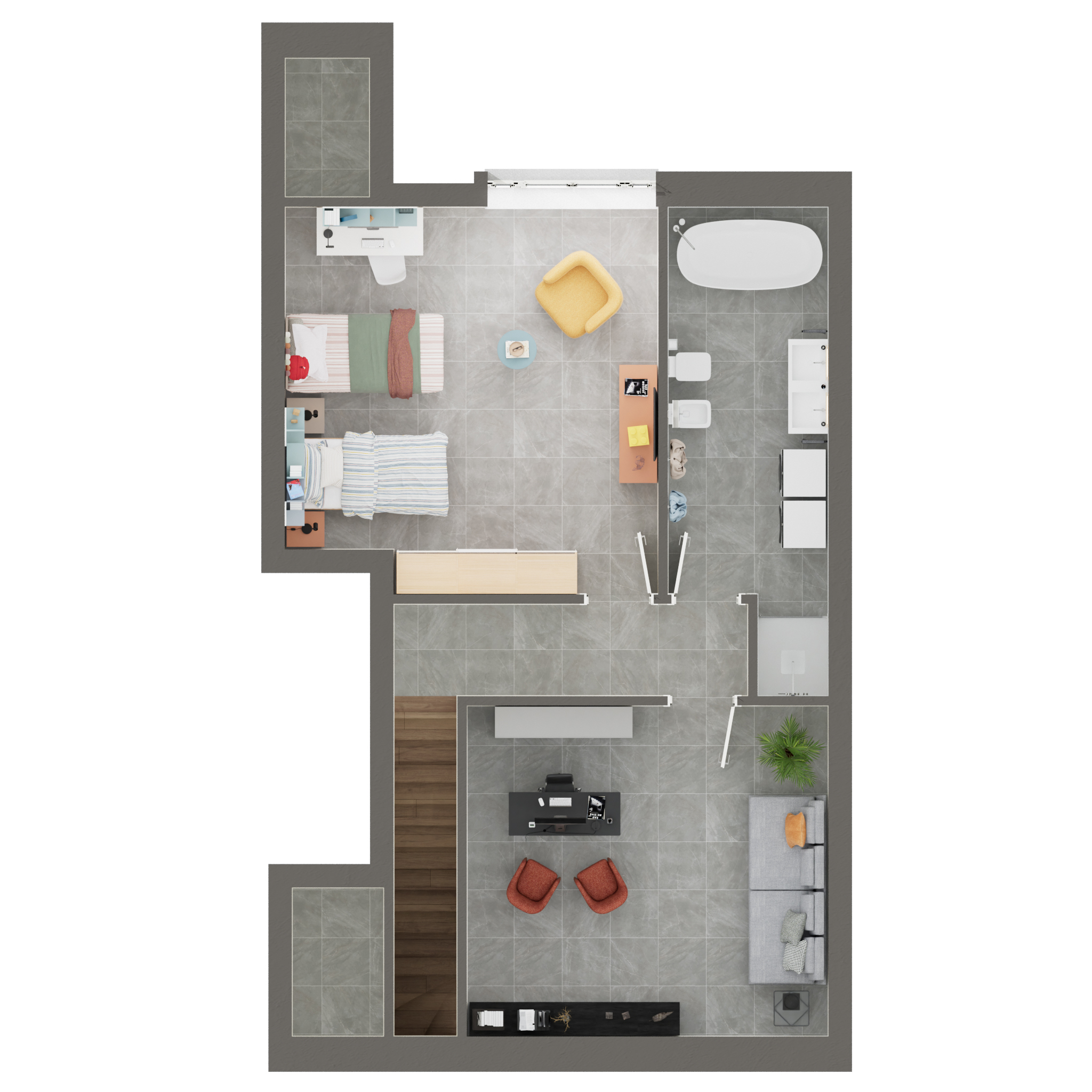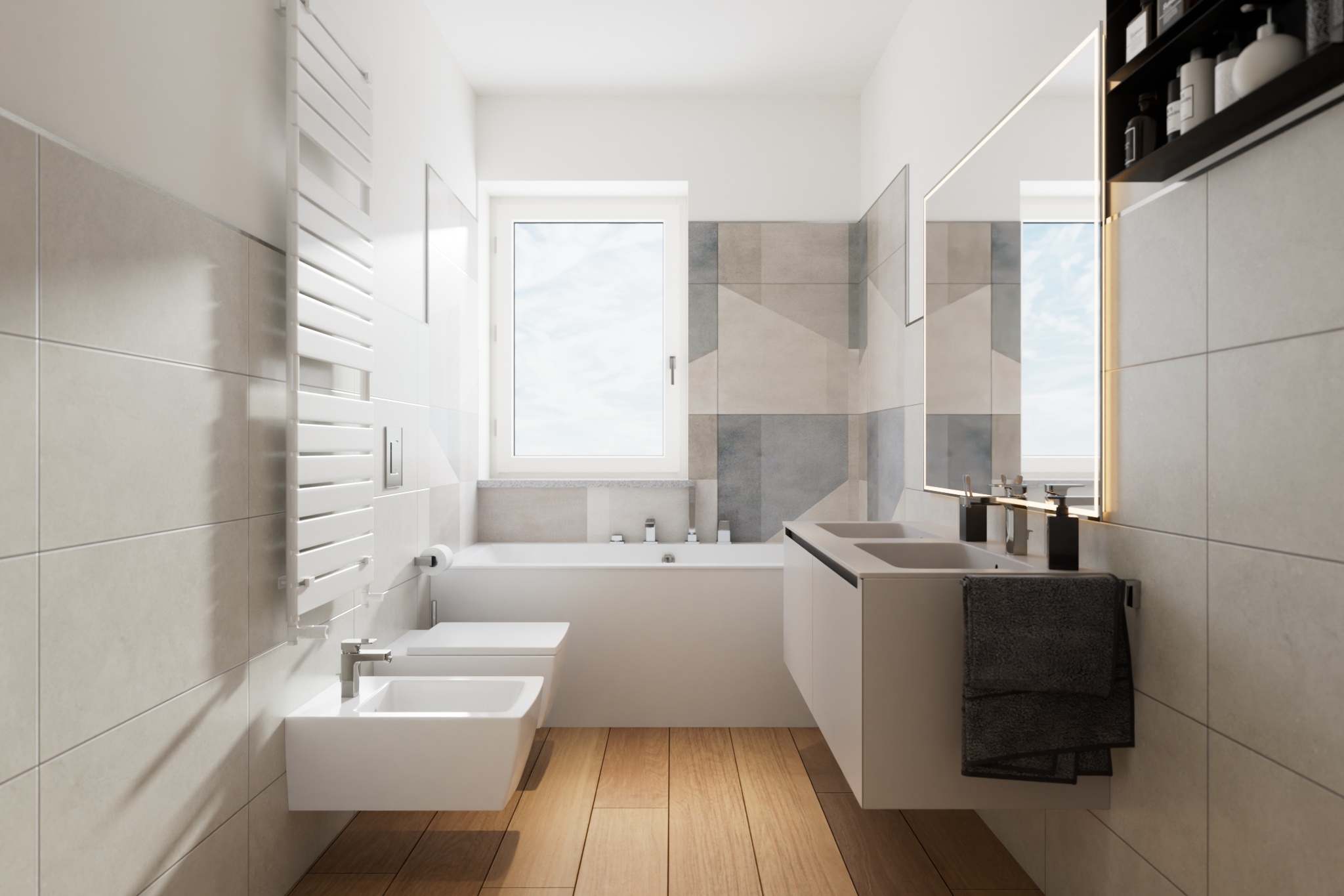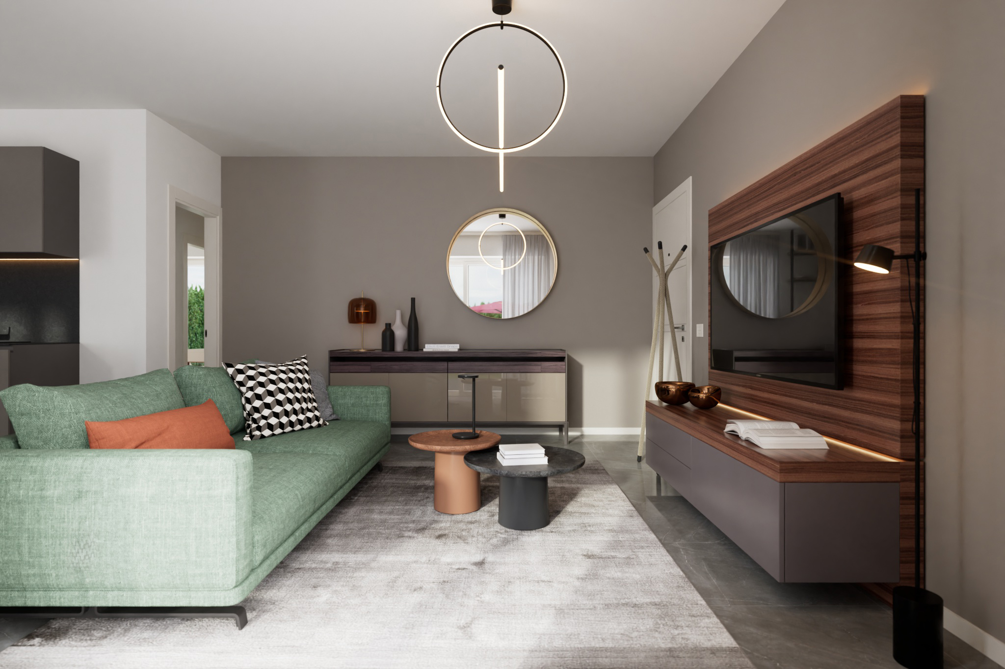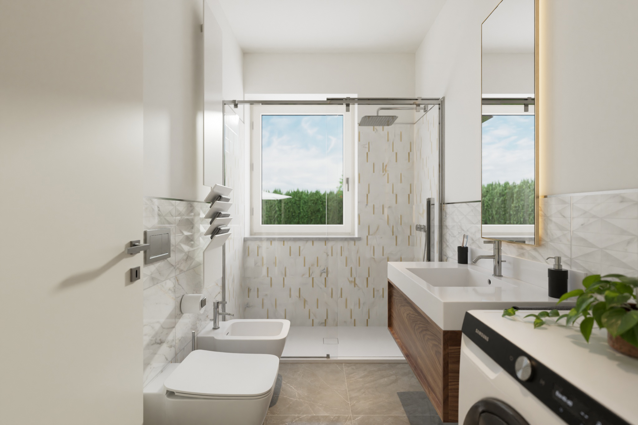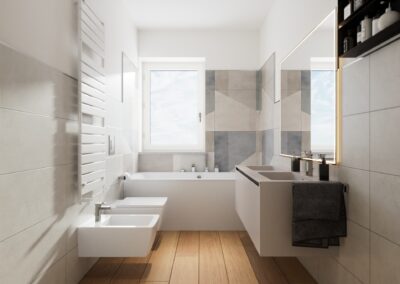 Finiture di alta gamma che spaziano dal gres porcellanato ai parquet, personalizzabili per rendere ogni ambiente unico e accogliente.
