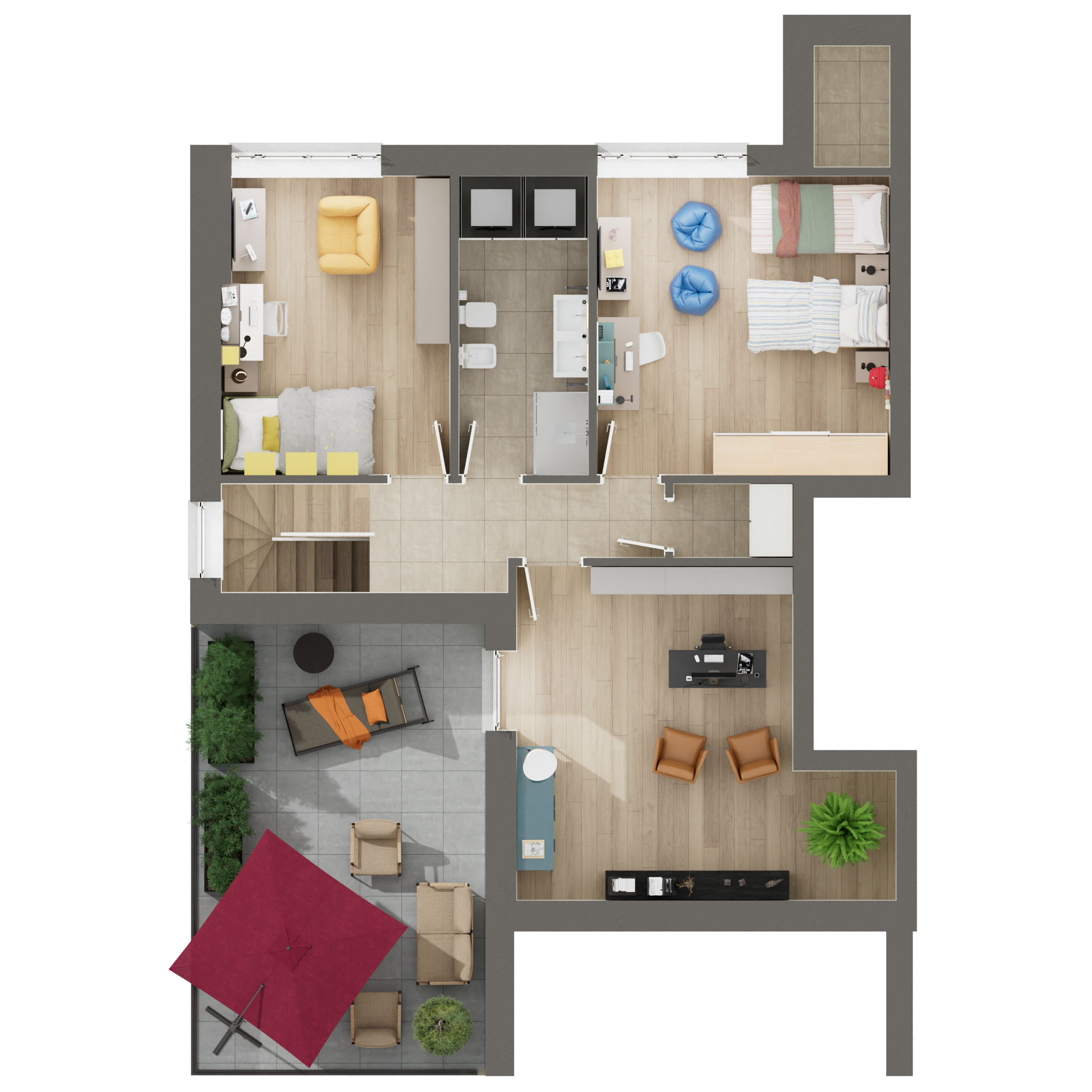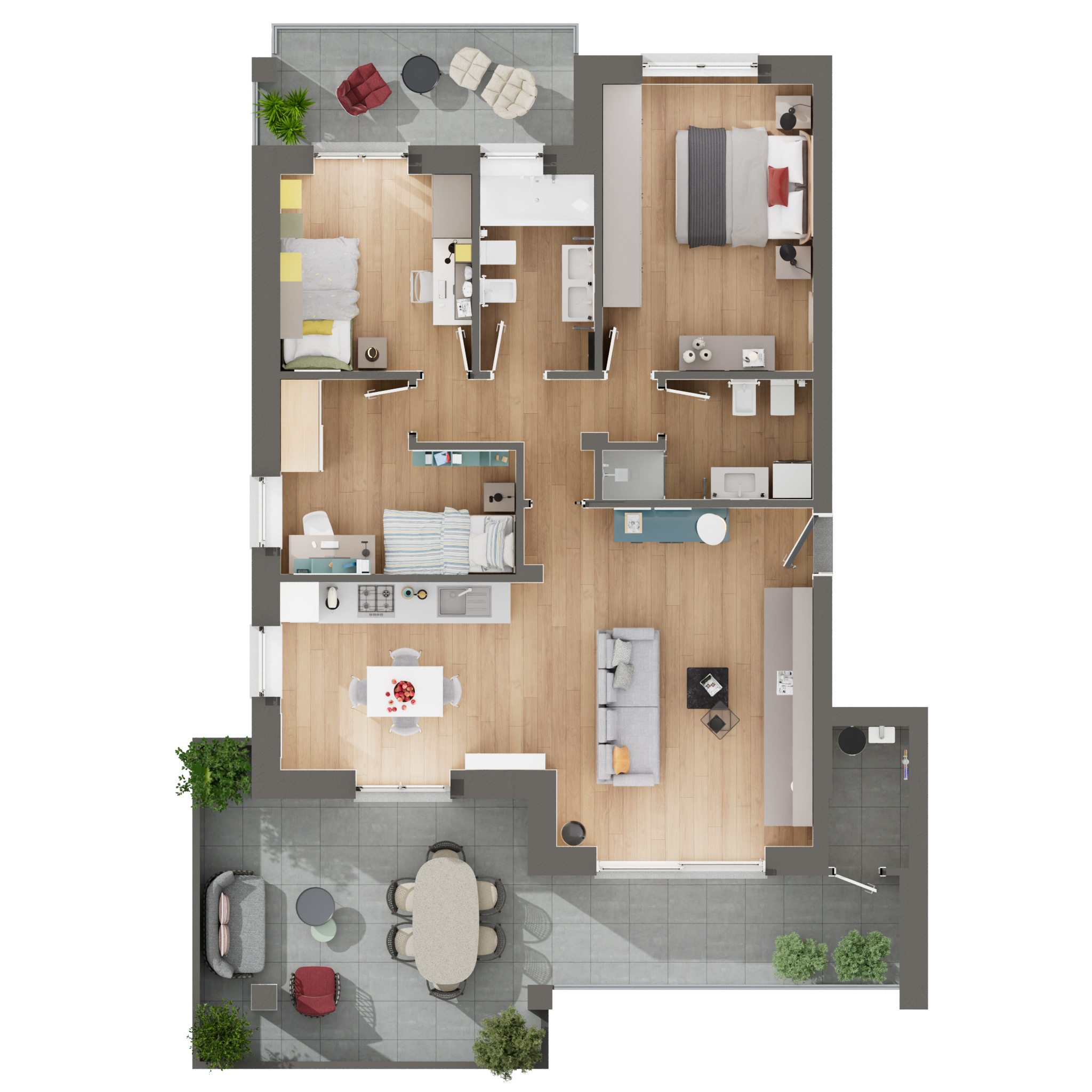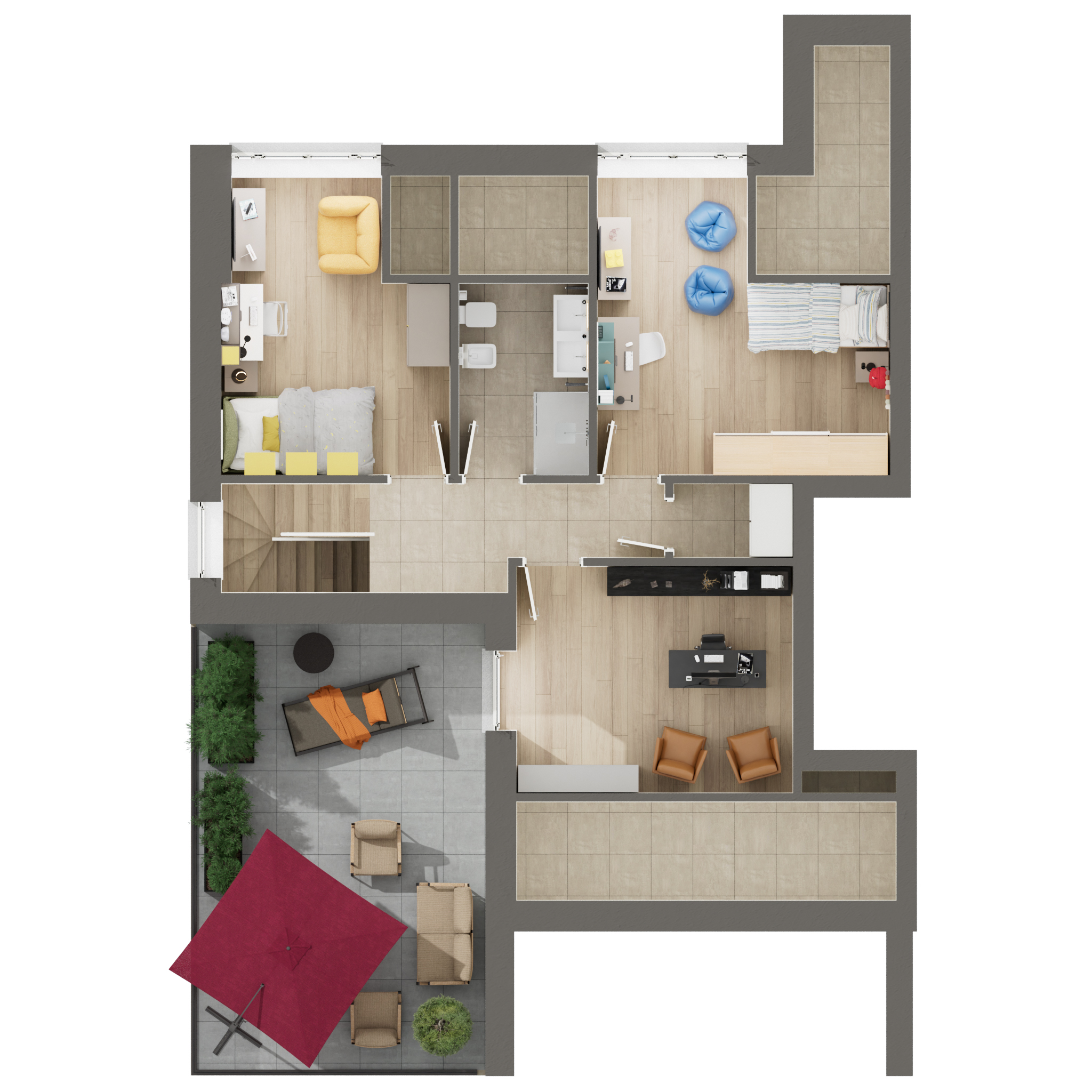 Piani Terra: dotati di splendidi giardini privati per vivere il relax all’aperto.