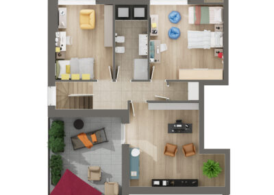 Ultimo Piano: soluzioni esclusive con sottotetti pertinenziali totalmente fruibili, completi di finiture e impianti.